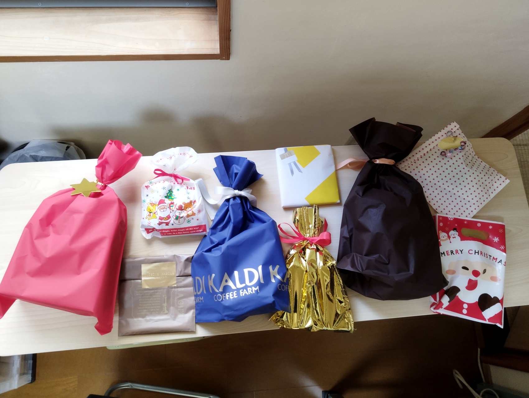 その後、3B特製くじ引きで決めた順番で、好きなプレゼントを選んでいただきました。600円前後のプレゼントは、物価高騰で探すのに苦労されたのでは・・・。ご用意、ありがとうございました!3Bからは「プレスバターサンド」をプレゼントさせていただきました。