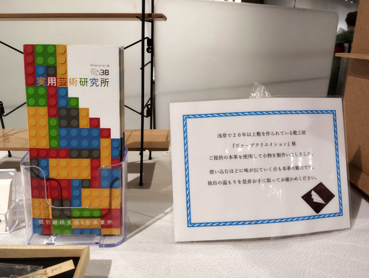 今回は浅草の靴やバッグの製造メーカー(株)ヴァーブクリエーション様からご提供いただいた革を使用したコーナーをご用意、たくさんの方々が商品を手に取ってくださいました。